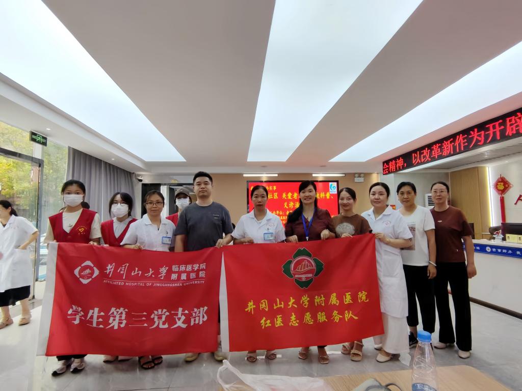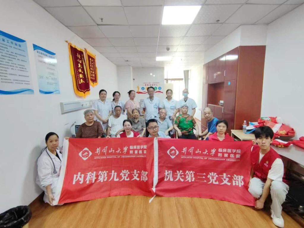 9月12日上午,团委联合机关第三党支部、内科第三党支部、内科第九党支部以及南昌大学第一附属医院护理团队,共同走进吉州区爱心老年养护院开展联合义诊。