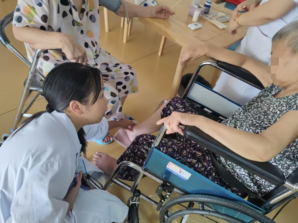 病房巡诊过程中,医护团队密切配合,通过问诊、查体、测血糖、量血压、指导康复锻炼等方式,帮助老人树立健康生活方式,预防和管理慢性疾病。对存在健康问题的长者,团队进行了细致的检查,并向养护院管理人员提出了许多医疗建议。义诊活动的同时,团队成员结合养老院的管理现状,也提出了一些重要的管理建议。