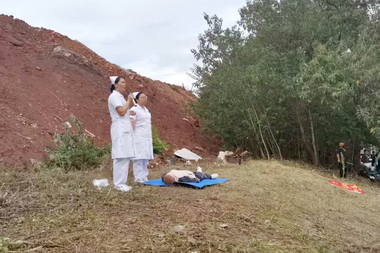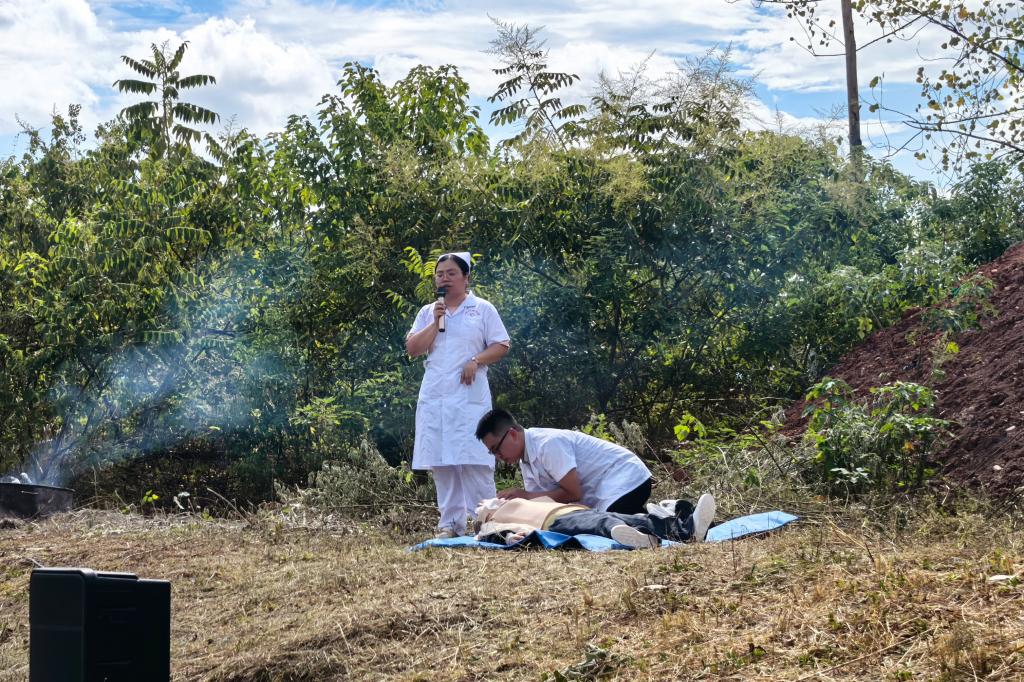 肖娟和黄小新护士进行实际操作演练,在演练过程中,强调了心肺复苏的正确步骤和注意事项,包括如何判断伤者的意识,如何开放气道,如何进行人工呼吸和胸外按压等。演练结束后,邀请学生参与现场模拟演练,并进行现场指导,纠正错误动作,确保学生能够正确掌握心肺复苏操作要领。